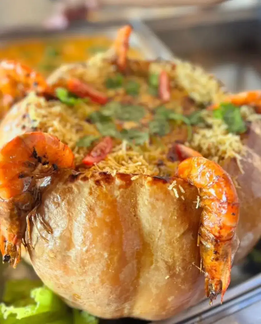 R$68Filé de camarões puxado no molho 03 queijos gratinados e servidos com torradinhas.